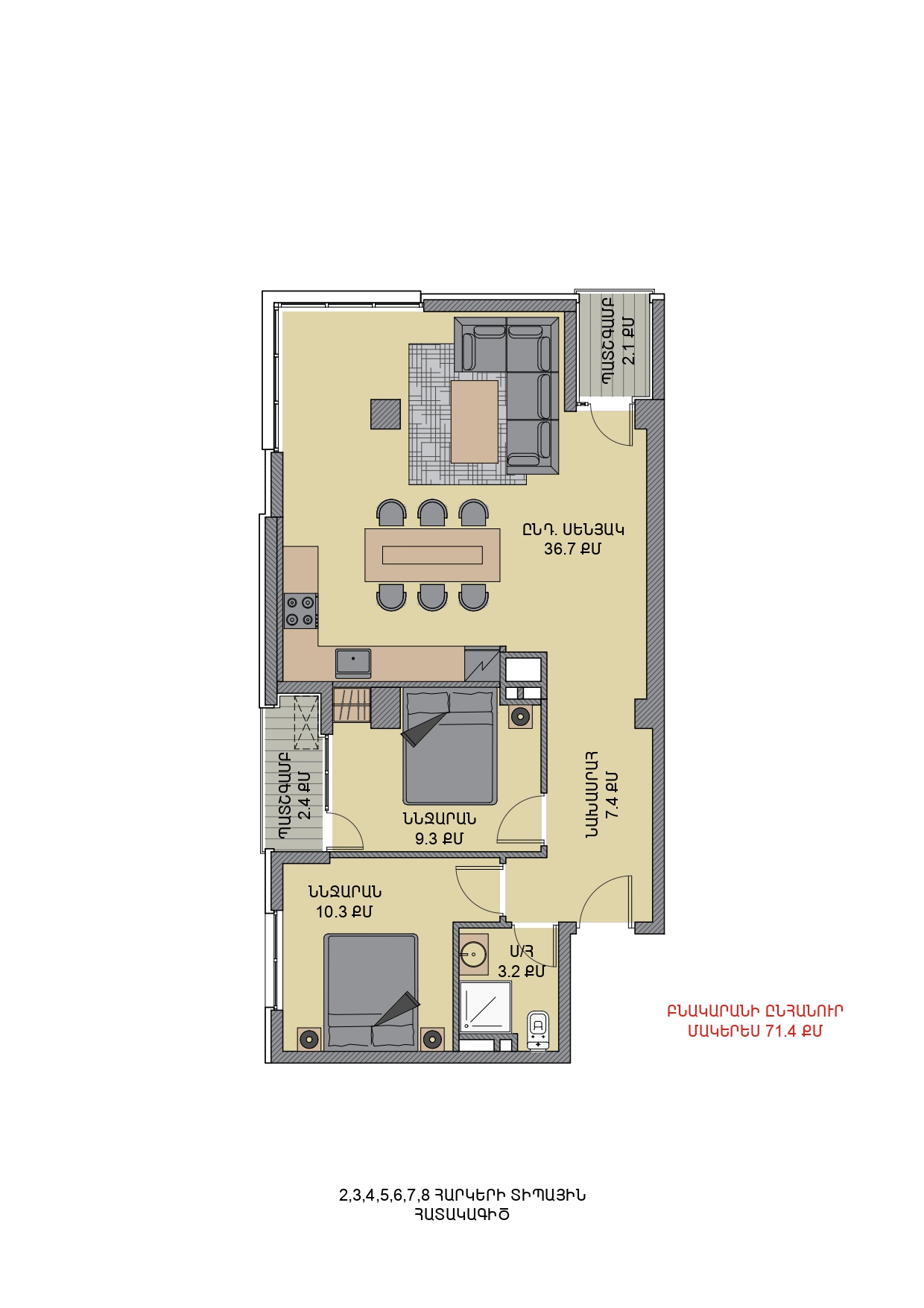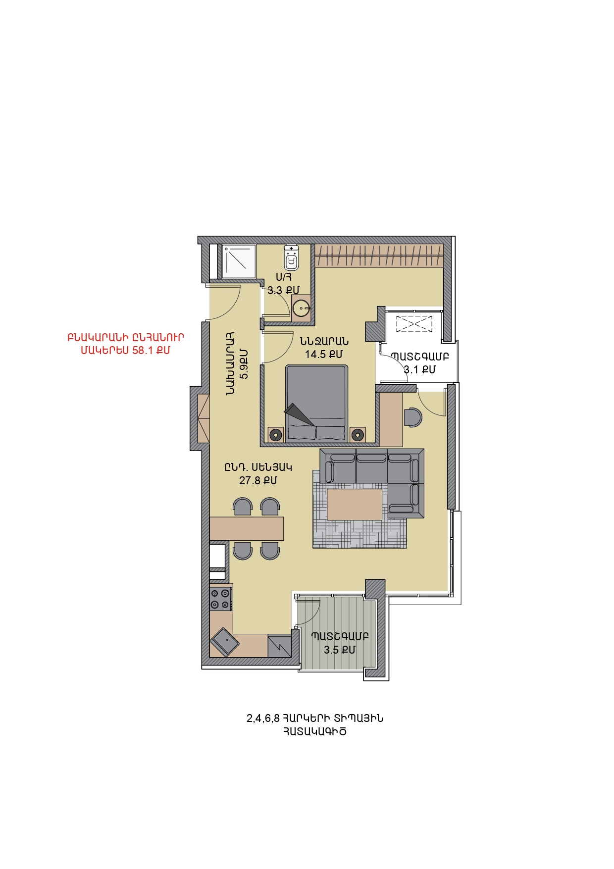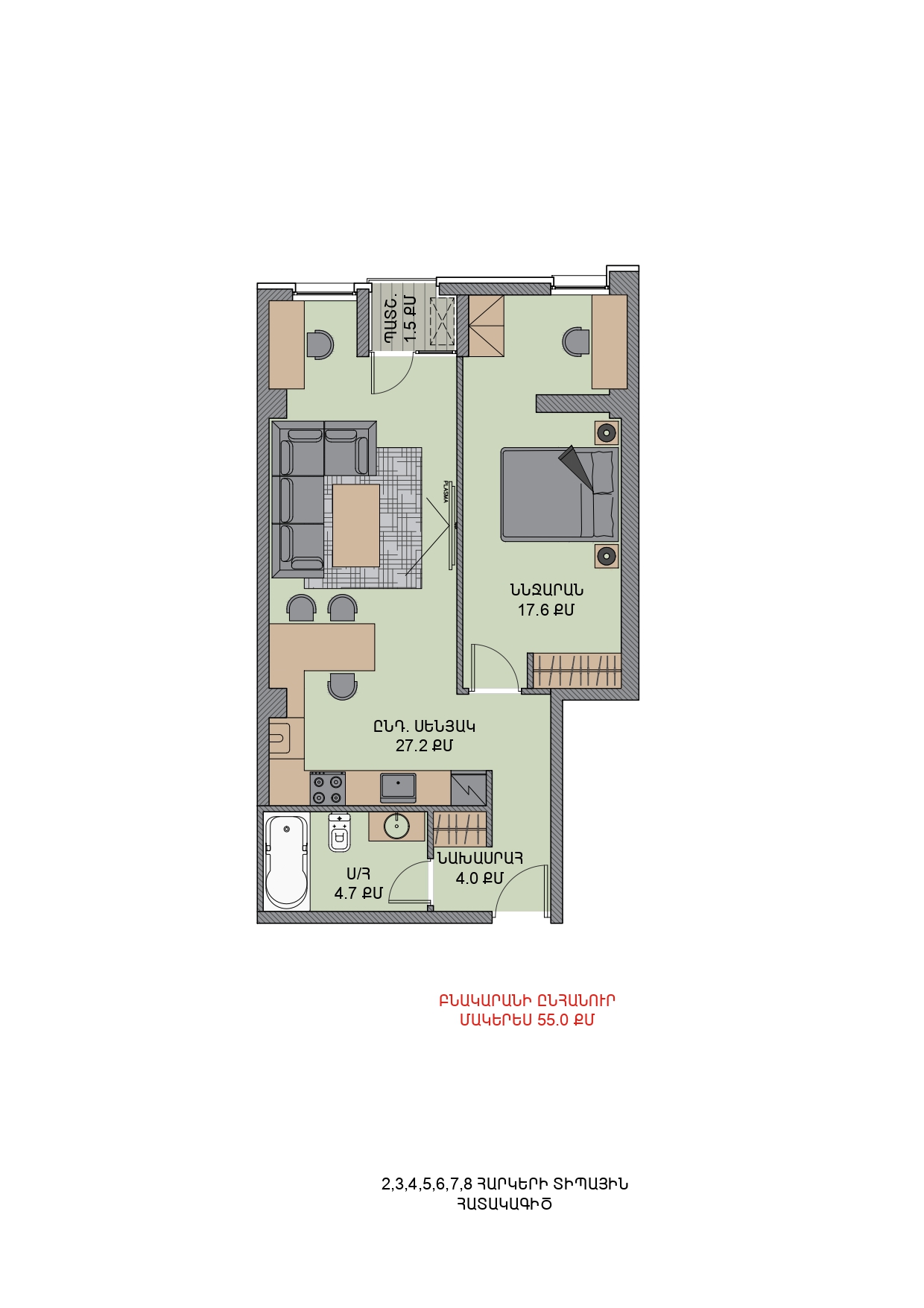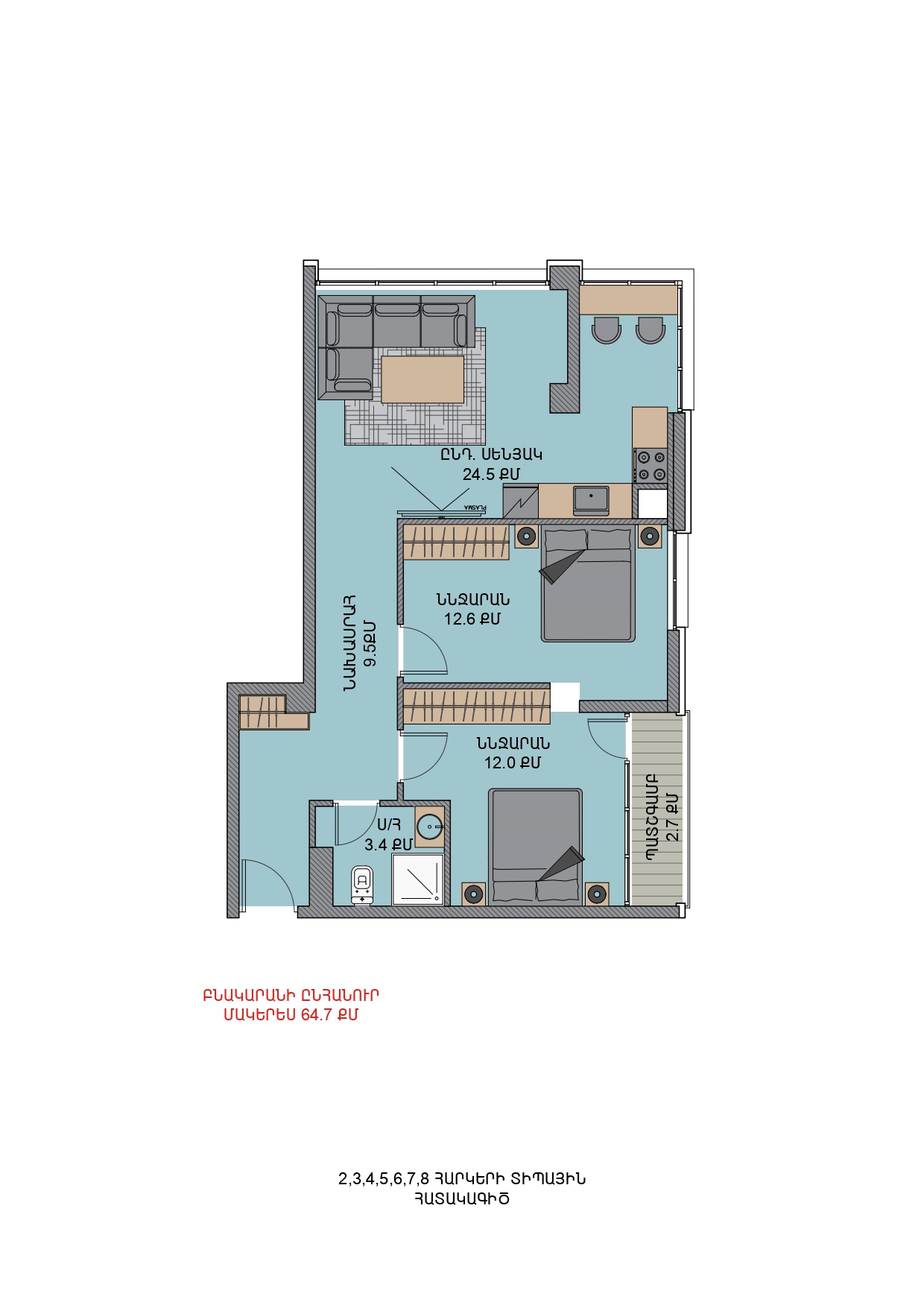 2-4 սենյականոց բնակարաններ՝ 55 - 71,5 քմ մակերեսներով