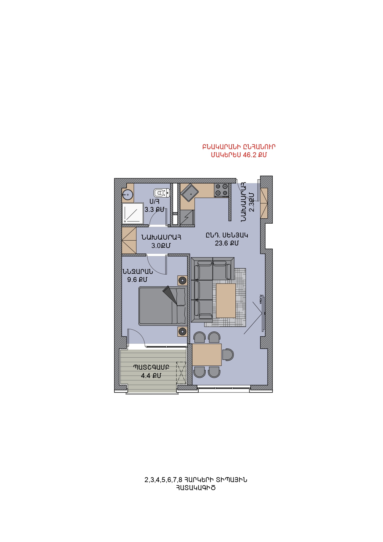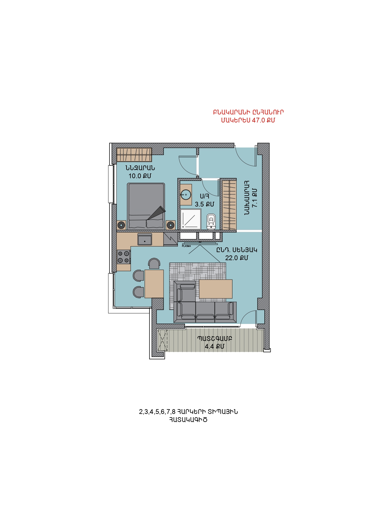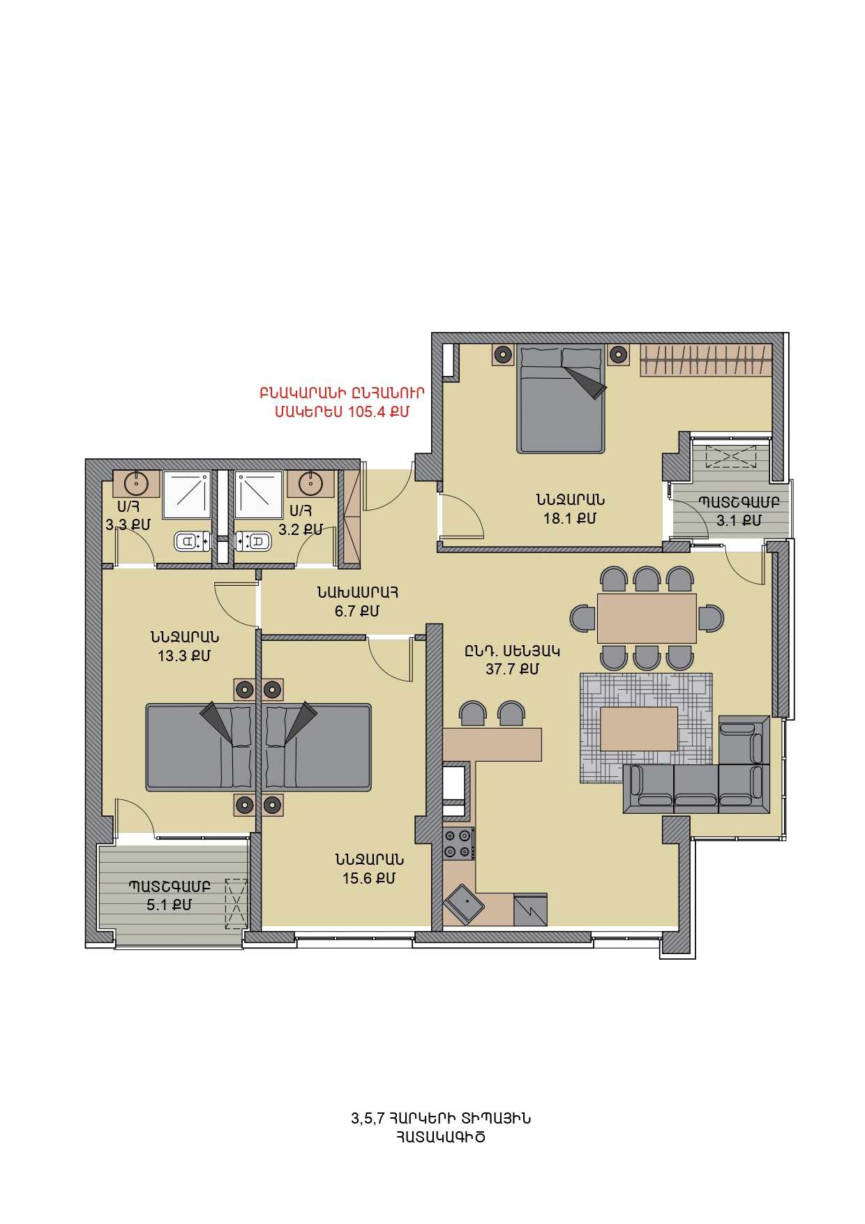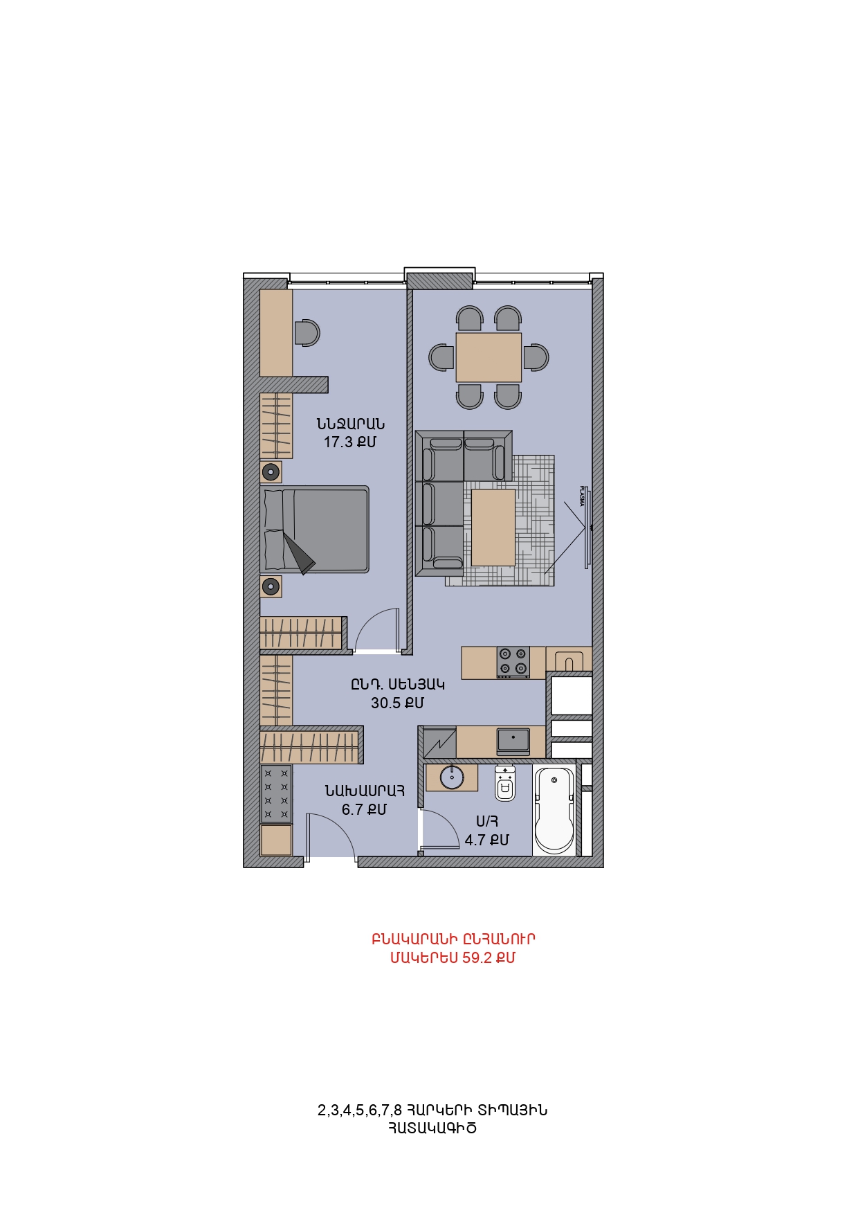 2-4 սենյականոց բնակարաններ՝ 55 - 71,5 քմ մակերեսներով