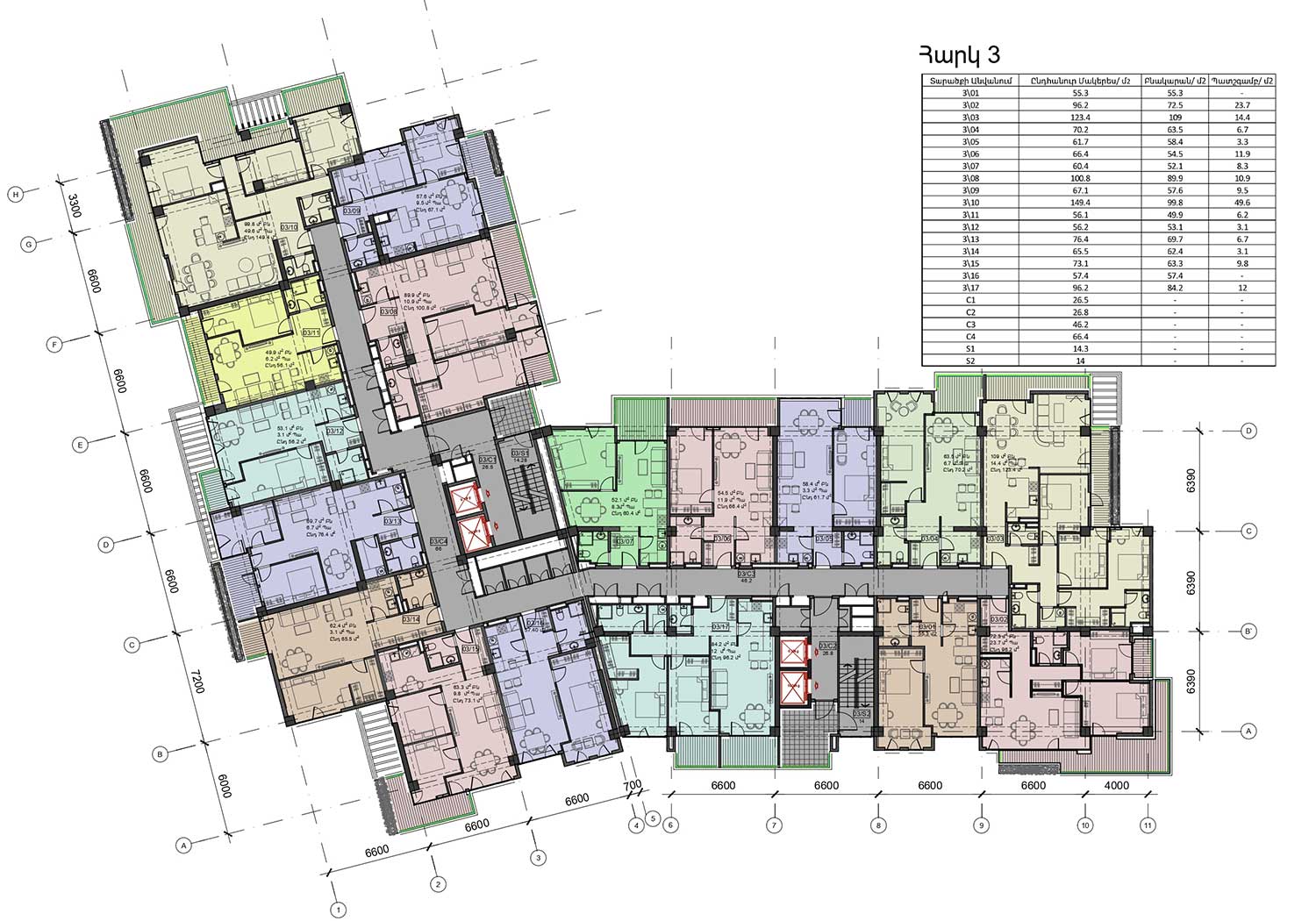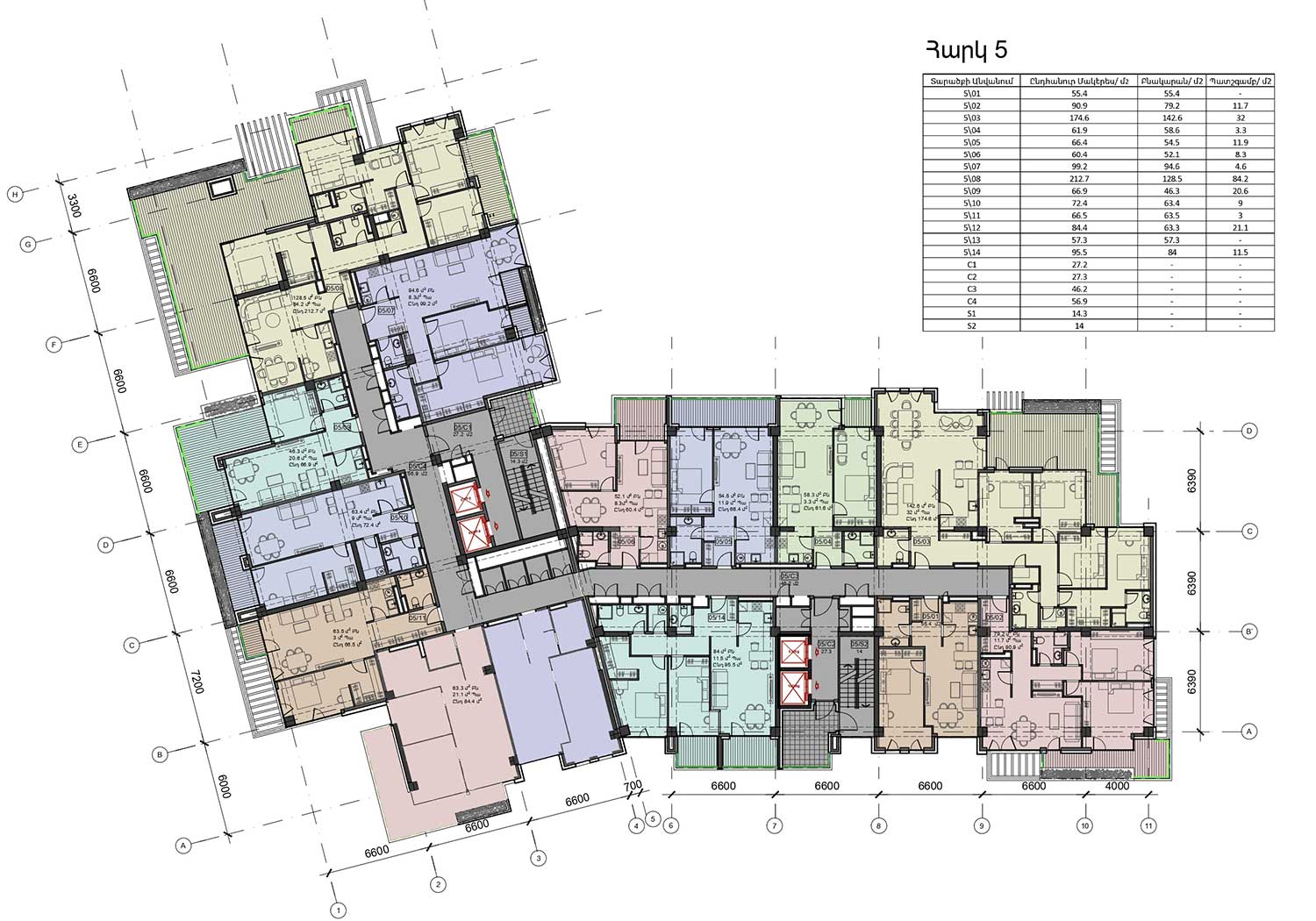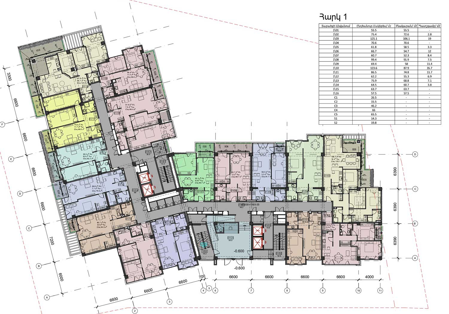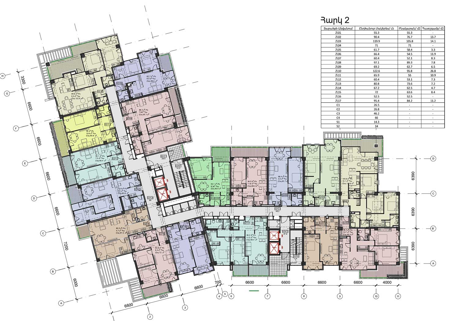 • Շենքում առկա են 2-4 սենյականոց բնակարաններ՝ 55-212 քմ մակերեսներով